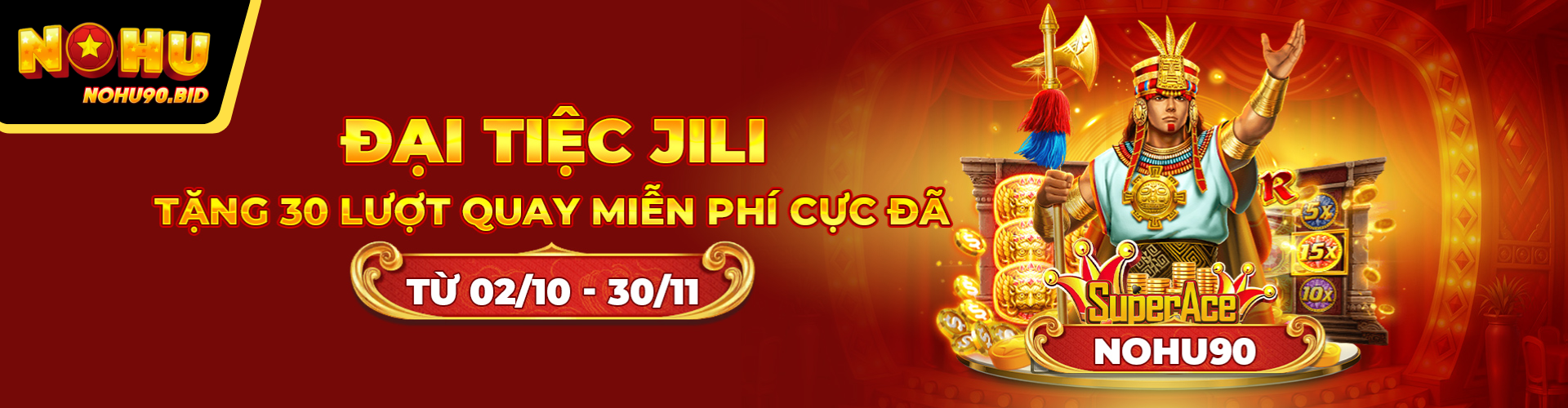 | Đại Tiệc JILI | Nhận 30 lượt quay miễn phí cực đã, tận hưởng những giây phút giải trí tuyệt vời. | Từ 02/10 – 30/11 | Thưởng cực khủng! |